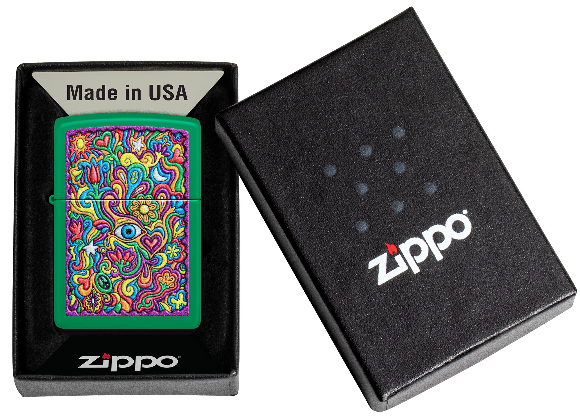 - Genuine Zippo windproof lighter with distinctive Zippo "click"