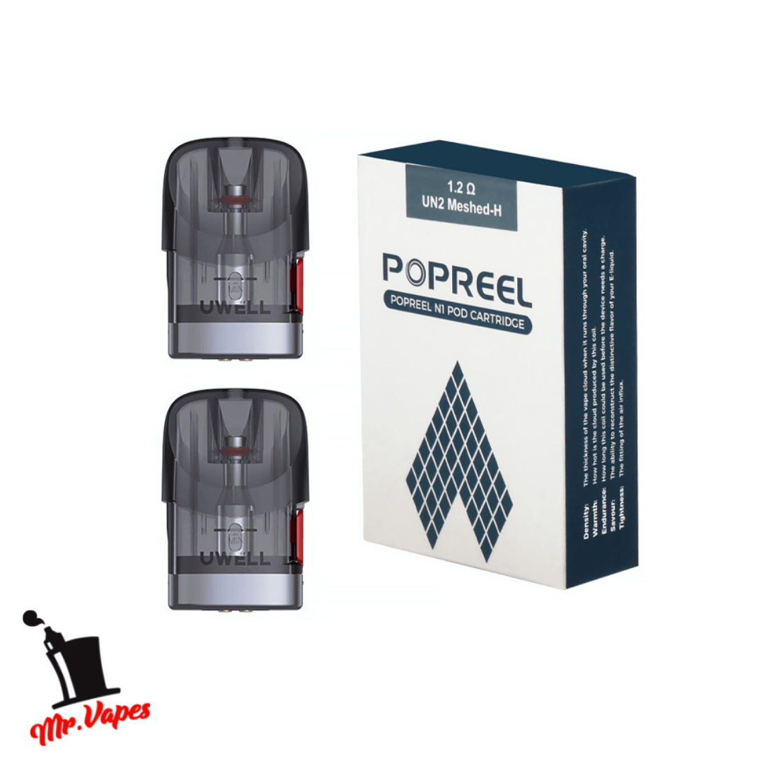 Cartuchos de recambio para el Popreel N1 de Uwell. Una capacidad de 2ml de líquido, cuenta con una resistencia integrada de 1.2 Ohm y llenado lateral.