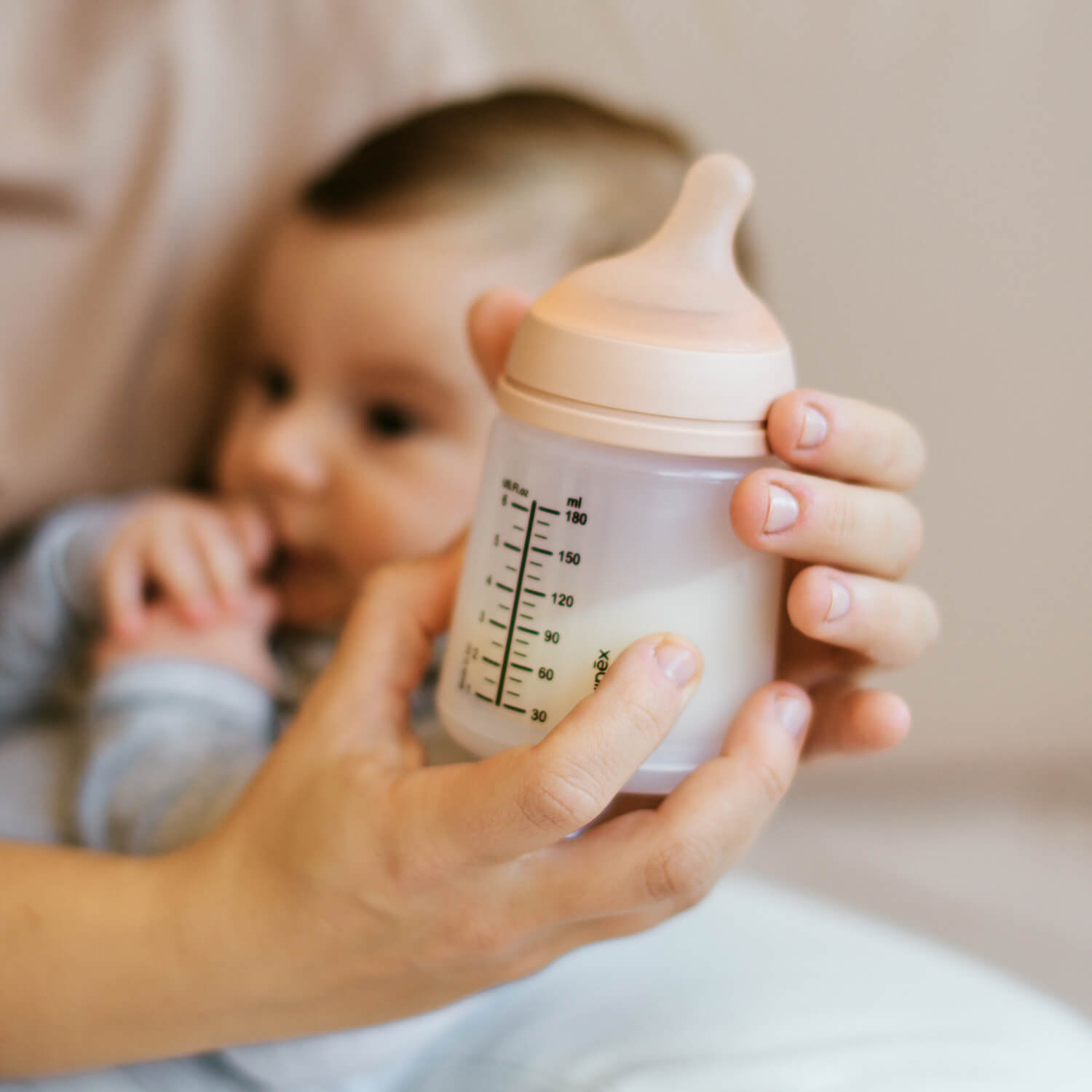 - La tetina del biberón simula en forma, longitud y tacto el pezón materno.