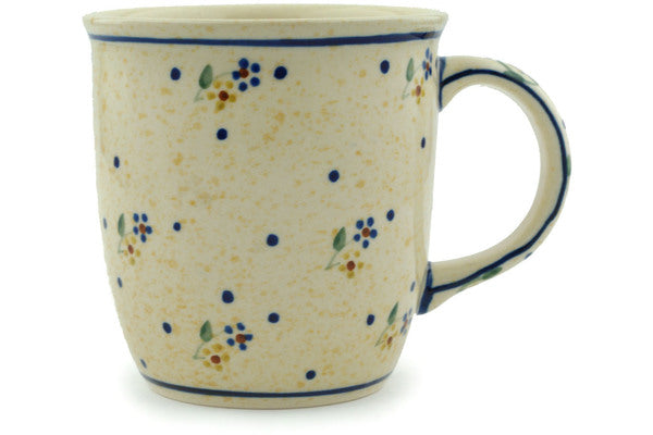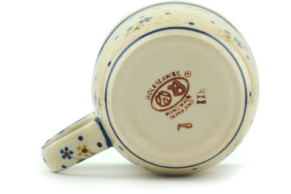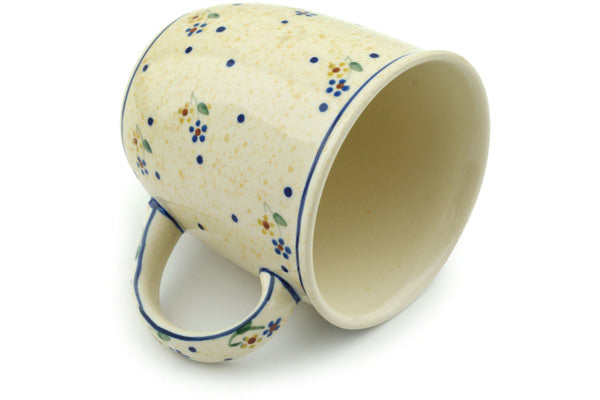 This Polish pottery Mug is made by Zaklady Ceramiczne workshop in Boleslawiec, Poland. Manufacturer item number H7030A. It is 3¾" high and measures 5" by 3½". The capacity of this Mug is 12.0 oz when filled to rim and it weighs 0.8 lbs. It is part of the Country Meadow Collection.