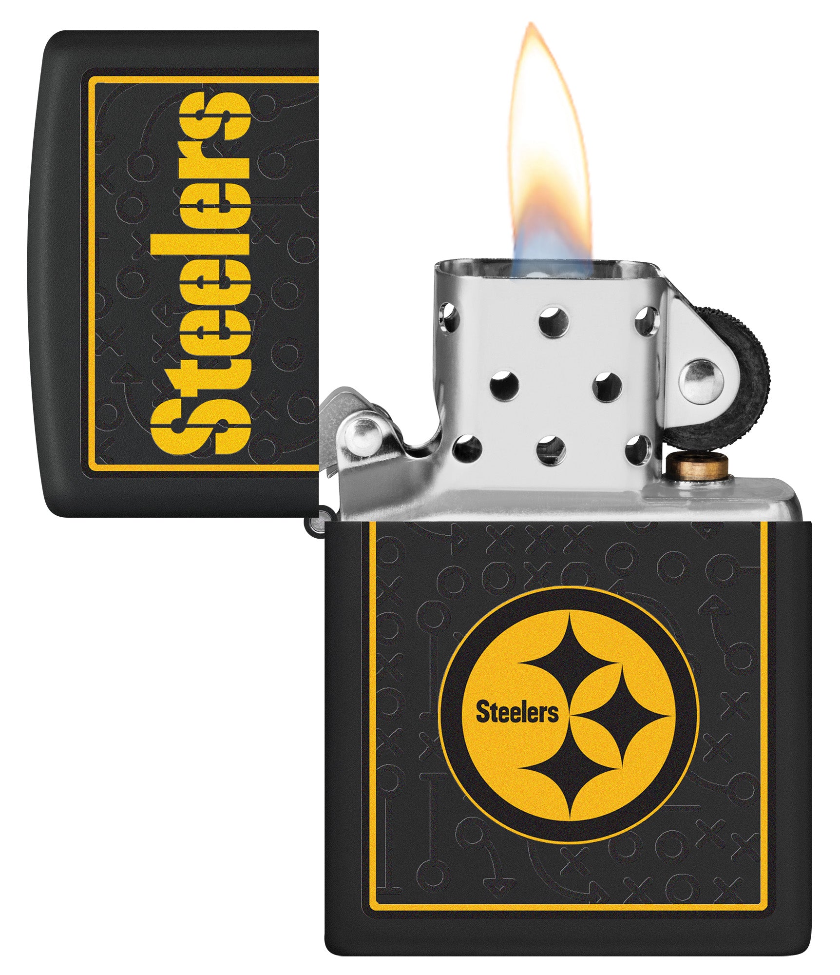Gear up for Game Day with your team’s officially licensed windproof lighter. Backed by a subtle playbook diagram, the Atlanta Falcons wordmark and logo dominate the surface of the Black Matte lighter in a bold Color Image design. Comes packaged in an NFL-branded gift box. For optimal performance, fill with Zippo lighter fuel.